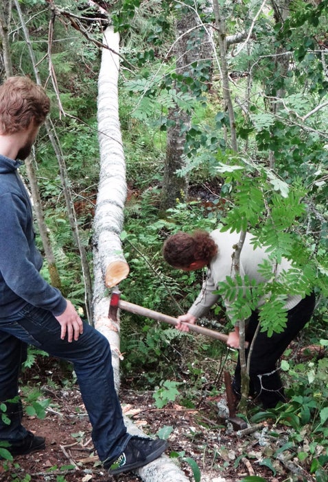 Het levert weer veel hout op. maar moet minstens 2 jaar drogen.In de middag gaan de vrienden en Ivar Kanoën op de Klarälv, maar dat wordt bijna raften.